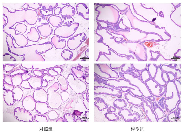 造模方法:摘除睾丸后7天,开始连续皮下注射丙酸睾酮4周,成功制备前列腺增生模型。
